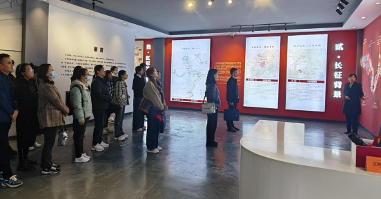 到达百宜红军烈士陵园后,讲解员首先为全体党员讲解“中央红军过乌当、中央首长进到马场、百宜阻击战、红二红六军团过乌当、红军与乌当百姓军民鱼水情深、张文英冒死救红军、百姓‘过河拆桥’”七块地标的故事,带领大家追寻红军足迹、回顾红色历史。在讲解员的引领下,全体党员来到红军烈士纪念碑前,集体奏唱国歌、敬献鲜花、肃立默哀、敬礼和景仰,并由支部书记刘亮带领全体党员重温入党誓词。瞻仰烈士墓碑、学习烈士生平事迹后,大家集体参观百宜红军烈士陵园陈列馆,通过陵园沿革、长征背景、红军长征过乌当、军民鱼水情、红色革命事件等一段段革命史实,全体党员在缅怀先烈精神中认识到,学习和弘扬红军战士对崇高理想矢志不渝、对党和人民无比忠诚、对革命事业锲而不舍的坚定信念,是我们对长征精神最好的弘扬和传承。